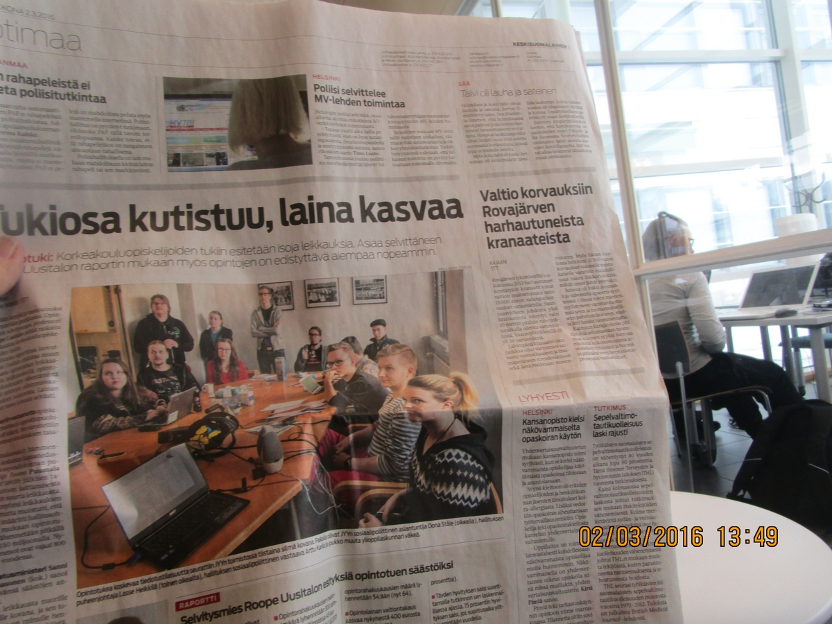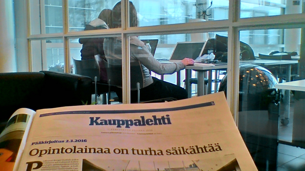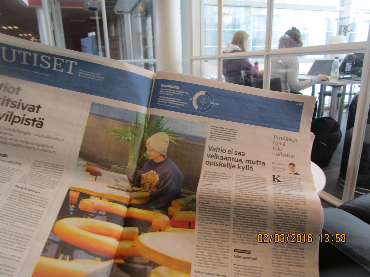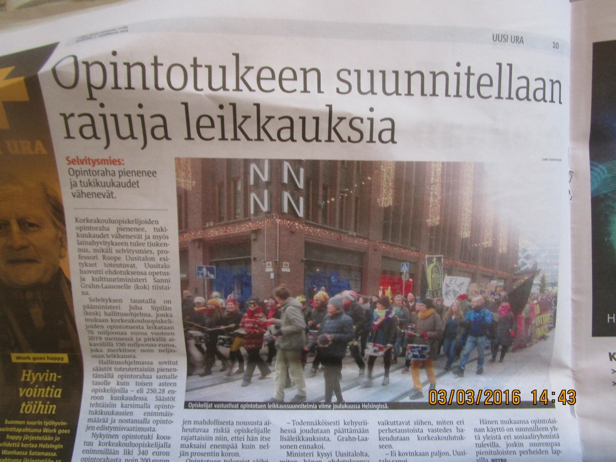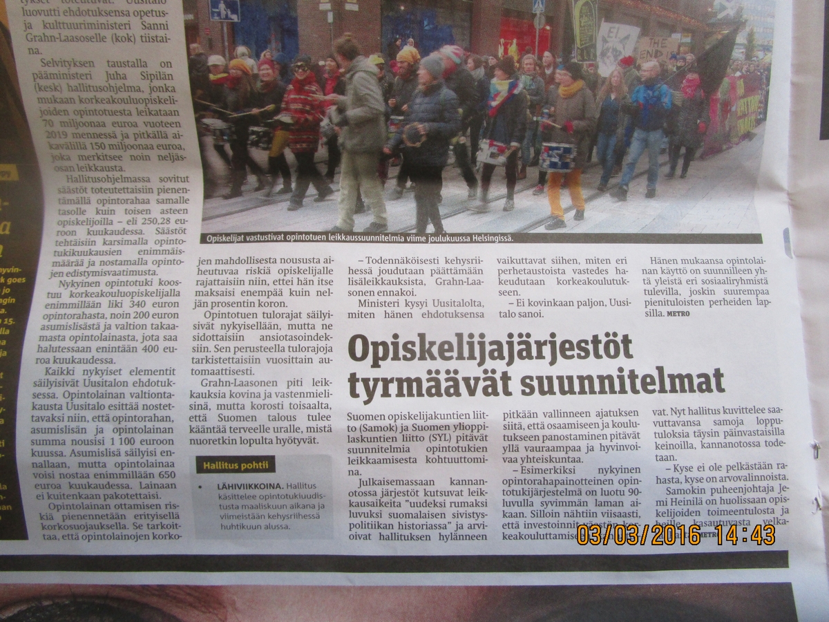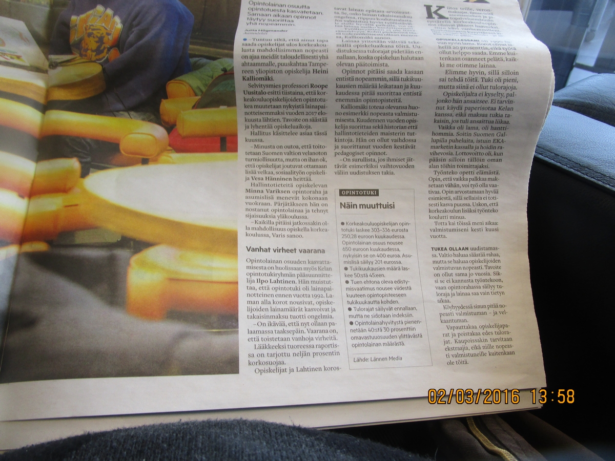 "Valtio ei saa velkaantua, mutta opiskelija kyllä". Aamulehti keskiviikkona 02.03.2016.