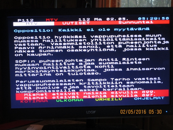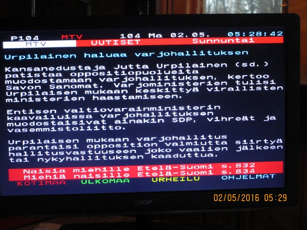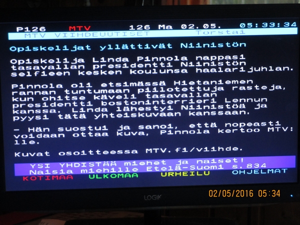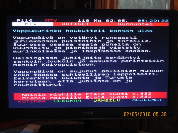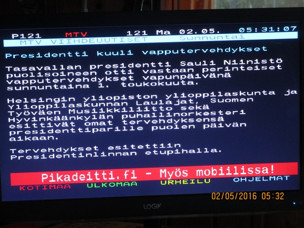 VAPPUNA 2016. Uutisten aika 2. YLE TEKSTI-TV 01.05. 15:58:07