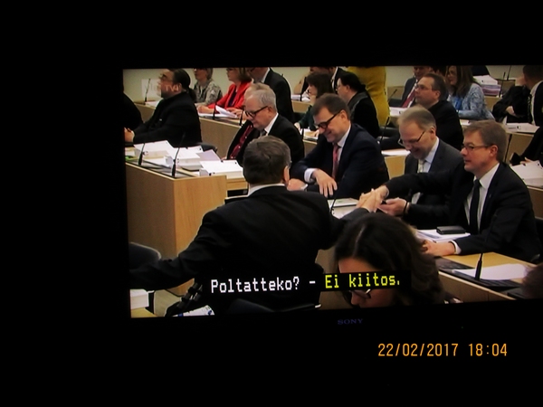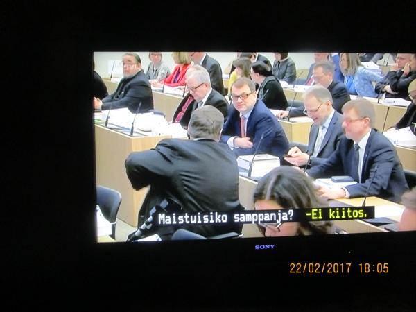 YLEN UUTISISSA FINAVIA, BERNER JA SIPILÄ SEKÄ HIUKAN RINNEKIN, "TEKSTEIN". " Ylen uutisissa keskiviikkona 22.02.2017 klo 18:01- 18:05 kaksi päivää ennen ministeri Anne Bernerin luottamusäänestystä eduskunnassa. Kuvat: Pertti Manninen. |
