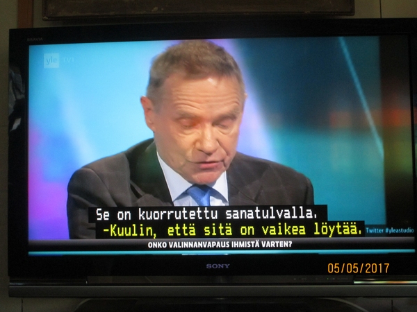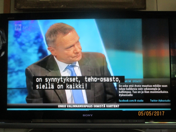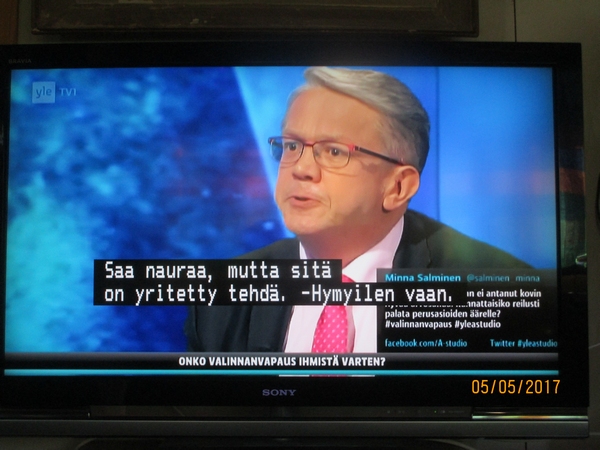 Lauantai 2017-04-29 - Vesa Vihriälä ja Antti Kaikkonen sekä Antti Rinne Ylen kanavilla. Kuvat Pääministeri Juha Sipilä Ylen kanavilla. Osa3. Kuvia partiolaisten Yrjönpäivän marssilla 2017 ja 1956. Valkoinen koira ja päiväkotilapset. KUVA Presidentti Donald Trump kertoo lapsuuden lempilaulustaan? 2 KUVAA TOTUUS. Lue! Pääministeri Juha Sipilä on pihalla Turkki-asiassa. Lue! KASVUA, KASVUA, KASVUA! KUNNALLISVAALIT 2017. Lue! Ymmärrys. Lue! Aki Kaurismäki 60 vuotta. VUONNA 1986. VETOOMUS! RAAKAMATERIAALIA RAAKAA SORTOA VASTAAN! Lue! "Ilmoitus maksettu Rakennusliike EKE:n rahoilla". KUVA Sipilä ja ruotsinkieli, ¤#¤#¤#¤#. Lue! Viimeistä päivää. KUVASARJA Presidentti Sauli Niinistö ja turvapaikanhakijat. KUVASARJA Presidentti Sauli Niinistö ja saamelaiset. KUVASARJA Juha Tapiola: Saamelaisten oikeudet eivät toteudu Suomessa. Lue! SMILE from MODERN TIMES Suomennos 2001 Lue! |