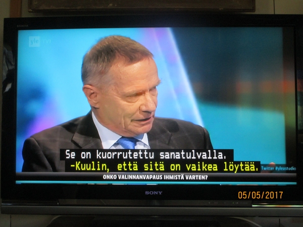 NYT MYÖS: fy.fi Keskiviikko 2017-05-10 - KESKUSTELUA SOTESTA. KORRUPTIOKIRJOITUKSIA "Työtä kaikille!" 1994-05-01. Jyväskylä. Tori. Arkisto 2008: Sattumalta säilynyttä. Lue! Vesa Vihriälä ja Antti Kaikkonen sekä Antti Rinne Ylen kanavilla. Kuvat Pääministeri Juha Sipilä Ylen kanavilla. Osa3. Kuvia partiolaisten Yrjönpäivän marssilla 2017 ja 1956. Valkoinen koira ja päiväkotilapset. KUVA Presidentti Donald Trump kertoo lapsuuden lempilaulustaan? 2 KUVAA TOTUUS. Lue! |