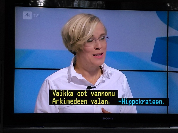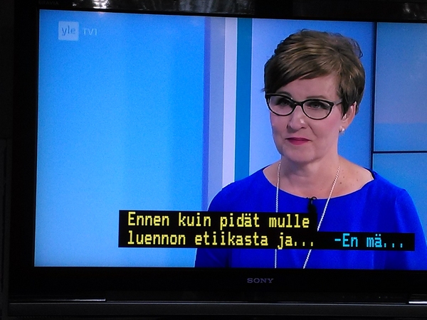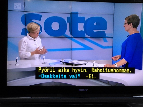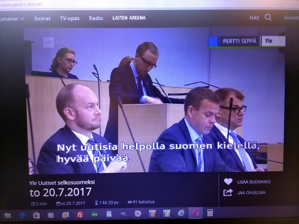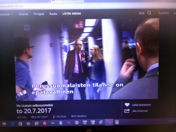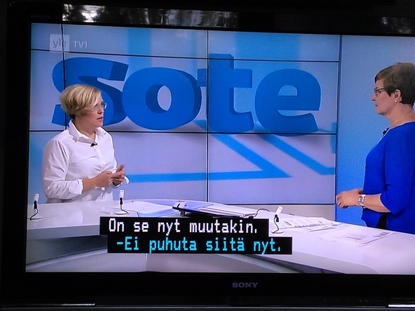 Pääministerin tervehdys KUVAT - Rakasta! Aforismeja LUE! - Suosittelemme. Hakkarainen LUE! - Terrafame-selvityksen puutteita LUE! - Puolet epäilee salaista agendaa LUE! - Fingerroosin rohkea persie KUVA - Harkimon jouluevankeliumi LUE! - Pääkirjoitus. Sipilän jääviys LUE! - VUOSIKATSAUS 2016 http://www.nettisanomat.com/2017/01/07/etusivu.html KESKUSTELUA SOTESTA. A-STUDIO: TALK Tässä osassa peruspalveluministeri Juha Rehula ja puheenjohtaja Li Andersson sekä EK:n asiantuntijalääkäriJan Schugk ja emeritusprofessori Martti Kekomäki. Mukana myös tamperelaisia ja Tampereen valinnanvapauskokeilusta Johanneksen klinikan johtava hoitaja ... Elonen sekä Tampereen hyvinvointijohtaja Taru Kuosmanen. |