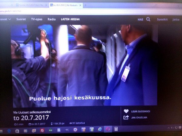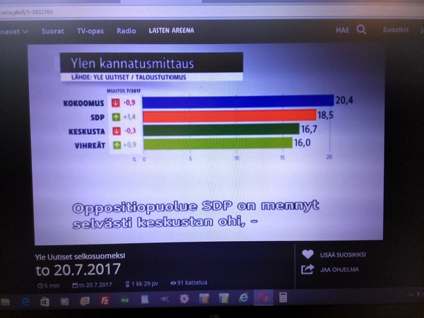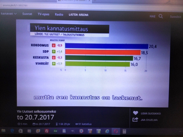 Yle:n surullinen Taloustutkimus Oy:llä teettämä "puoluekannatusarvio" Osa2 Kuvat: Pertti Manninen Areenasta torstaina 20.07.2017. Yle:n surullinen Taloustutkimus Oy:llä teettämä "puoluekannatusarvio" KUVASARJA |