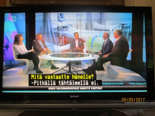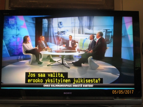 Pääministerin tervehdys KUVAT - Rakasta! Aforismeja LUE! - Suosittelemme. Hakkarainen LUE! - Terrafame-selvityksen puutteita LUE! - Puolet epäilee salaista agendaa LUE! - Fingerroosin rohkea persie KUVA - Harkimon jouluevankeliumi LUE! - Pääkirjoitus. Sipilän jääviys LUE! - VUOSIKATSAUS 2016 http://www.nettisanomat.com/2017/01/07/etusivu.html KESKUSTELUA SOTESTA. A-STUDIO: TALK Tässä osassa peruspalveluministeri Juha Rehula ja puheenjohtaja Li Andersson sekä EK:n asiantuntijalääkäriJan Schugk ja emeritusprofessori Martti Kekomäki. Mukana myös tamperelaisia ja Tampereen valinnanvapauskokeilusta Johanneksen klinikan johtava hoitaja ... Elonen sekä Tampereen hyvinvointijohtaja Taru Kuosmanen. |