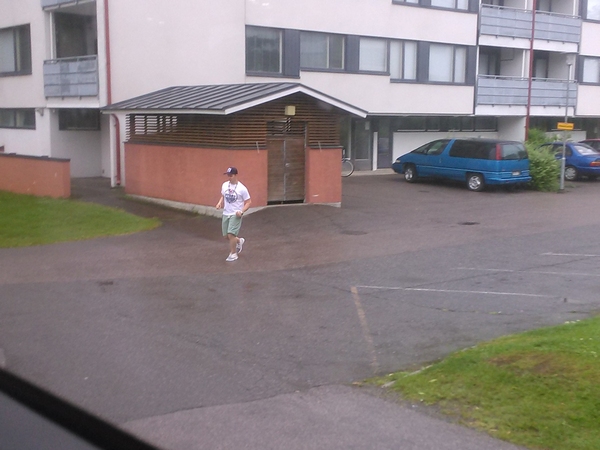 Lokinpoikanen tepastelee Oikeustalon pihalla sadekuuron tauottua ja kuvaajan ihmetellessä neuvotteluhuoneessa asiakirjanippua laatiessaan vastinetta hallinto-asiaan.Tiistai 2013-07-16 12:54. Keski-Suomi. Jyväskylä. Vapaudenkatu. Oikeustalo. Kuva: Pertti Manninen.Laajenna! |