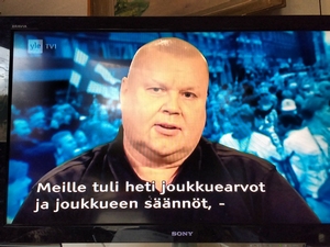 Torstaina 28.10.2004. Kenen rahoilla Kummola lahjoi Jutilan, jos lahjoi? "Kummolan uskotaan palkanneen Jutilan korvaukseksi siitä, ettei tämä lähtenyt eduskuntavaaleissa ehdokkaaksi viemään hämäläisen kiekkoväen ääniä Kummolalta. Tosin Kummola putosi Arkadianmäen väen jouykosta yhden vaalikauden jälkeen." Keskisuomalainen torstaina 28.10.2004. Tulossa! Lue myös! "Hallituksen pöytäkirjaan merkittiin, että "Jääkiekkoliitto on esittänyt kutsun kahdelle yhtiön edustajalle seurata jääkiekon MM-kisoja Wienissä 3.-5.96." Päätettiin, että yhtiötä edustavat kaupallinen johtaja Jussi Isotalo ja yrityspalvelupäällikkö Risto Kippola. Tämä oli pieni palkkio siitä suuresta työstä, jota myös Isotalo ja Kippola olivat tehneet edistääkseen Kalervo Kummolan, Veikko M. Vuorisen, Harry ja Leena Harkimon ja Juha Rantasilan yhteisiä bisneksiä." 04.11.2004.. Lue myös! Lahjoiko Kummola erotuomarin? 25.11.1999. Katso myös! Lätkäfanin hurma ja humala. Kuvasarja 19.04.2001. |