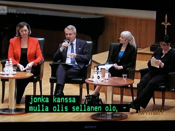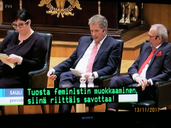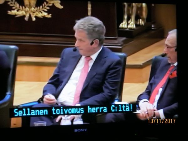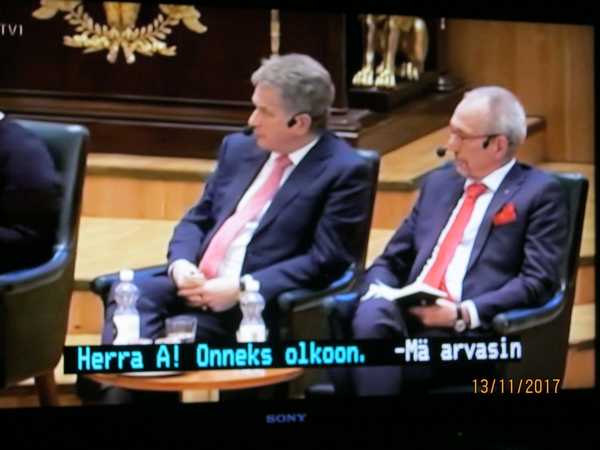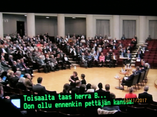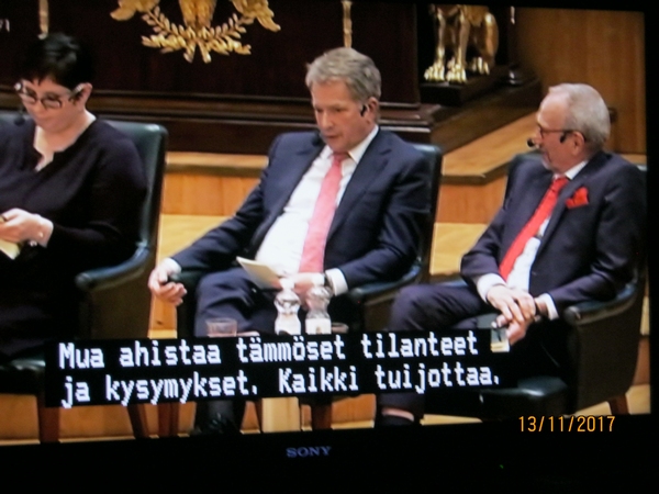 Nettisanomat 2017/11/16 - N:o 2022 - Presidenttiehdokkaiden tentti Helsingin Yliopiston juhlasalissa maanantaina 13.11.2017. Kuvat Ylen uutislähetyksestä ja tekstit Ylen Siskonpetistä jaksosta Akkojen kotkotuksia. Kuvat: Pertti Manninen. KUVASARJA - Björn Wahlroos ja Antti Herlin. Paljonko ihminen maata tarvitsee? - Arkisto 2008. Mistä ahneus alkoi? - Arkisto 2003. Talous. Kone sai Partekin puoli-ilmaiseksi. - Ameeba Porkkalassa sunnuntaina 24.09.2017. Kuva: Erika Manninen - Arkisto 2004. Arvo Turtiainen ja isäni vuonna 2004. - Presidentti Sauli Niinistö peruu kantansa ydinaseista. - Arkisto 2007. "FÖRBJUD ATOMVAPNEN". 1957. Kuva - Arkisto 2004. Kalervo Kummola palkkasi Timo Jutilan. - ASUNNOTTOMUUS. Arkisto 2005. Kahden asunnottoman puheenvuoro. - POLITIIKKA. Sininen tulevaisuus - LUONTO. Peurat pellon reunalla hämärtyvässä illassa. Kuva - Kansainvälinen maailman alkuperäiskansojen päivä on kansainvälinen vuosipäivä - Arkisto: Presidentti Sauli Niinistö pesee kätensä saamelaisten oikeuskysymyksessä. - KUVA. HALLINTAREKISTERILAIN - TIMO SOINI ESITTELEE KANNATUSKORTTEJA. - SMILE from MODERN TIMES - Hymy - PATSAALLA - KUVAT. KAMPISSA. - Vuosisadan kuva - Kuva. Vanha lastensairaala hajoaa käsiin. - Kuva. Käden ojennus. Karuselli. - etusivu - Torstai 16.11.2017 - Nettisanomat - Sanomanetti - Blogi: Viikkosanomat.fi - Kuvasanomat - Sanomatori - Viikkosanomat - Härkää sarvista - 12.fi - |