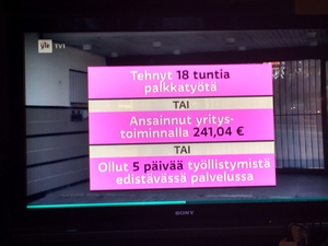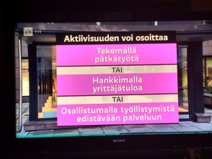 HUHTIKUU 2015. KUVA. NUORALLATANSSI MAALAISTENTALOLLA VAALITULOKSEN SELVITTYÄ YHDEN MAINOKSEN VIELÄ MUISTUTTAESSA NATOSTA JA JULKISISTA PALVELUISTA. |