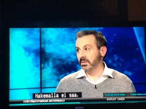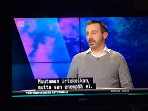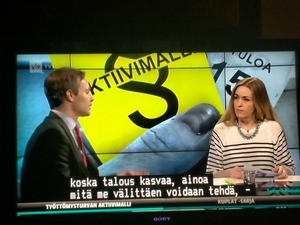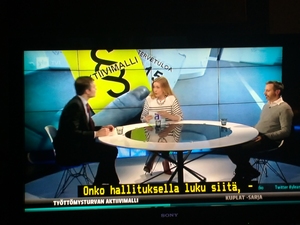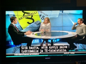Aktiivimalli. Ministeri Kai Mykkänen keskustelee kansalaisaloitteen ensimmäisen allekirjoittajan kanssa keskiviikkona 03.01.2017 Ylen A-studiossa. 250 kuvaa |