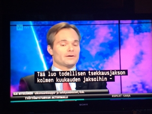 Päätöntä menoa. Sdp:n Jutta Urpilainen vauhdittamassa kokoomuksen presidenttiehdokas Sauli Niinistön kampanja-avausta.joulukuu 8, 2017 Niin meni kanavatkin sekaisin, että Ylen illan uutislähetyksen kuviin jäi toisen kanavan tekstit. Kuvat puhukoot puolestaan Sdp:n entisen puheenjohtajan päättömästä touhusta. Lisää kuvia. Jutta Urpilainen ryntää lavalle esittelemään yleisölle ihailemaansa Sauli Niinistää. Kaksi viimeistä kuvaa lisätty 22:14 ja huomautus siitä, että kuvien tekstit ovat jostakin toisesta ohjelmasta pätee tässäkin. Sama. Tags: 08.12.2017, Helsinki, Jutta Urpilainen, Kampanja-avaus, kansanedustaja, |