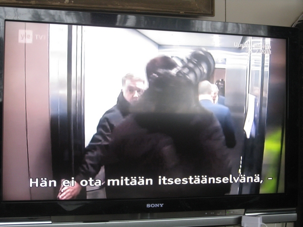"Oho! - Että silleen". Kuva. Tunnetusti pitkävihainen ja hienohelmainen tasavaltamme presidentti ei tällaista unohda. Taustalla hän on häärännyt niin Alexander Stubbin kuin nyt myös Ilkka Kanervan tien torppaamisessa. Uskollisia puudeleita on löytynyt toteuttamaan nämä tekoset. Viime kesänä hän ei enää malttanut kokonaan olla poissa julkisuudesta, vaan paljasti lausunnoillaan Perussuomalaisten hajottamisen ja hajoamisen yhteydessä, että hänelläkin oli sormensa mukana pelissä. Siinäkin puudelit tekivät likaisen työn ja vaivoin Niinistö kiemurteli itsensä irti tapahtumista. Seuraavat kuusi vuotta, ellei sitten enemmänkin, joudumme tällaisen presidentin kanssa elämään. Mikäänhän ei tällaista vallan huipullaolevaa pysäytä. Pääkirjoitus. Pertti Manninen maanantaina 05.02.2018 22:54 Runebergin päivänä ja päivänä, jolloin Paula Risikko valittiin Eduskunnan puhemieheksi. Kuvassa Ilkka Kanerva kumartuu alistuneena Sauli Niinistön edessä. Epäselväksi jää kumpi aloitti vuoropuhelun 12.06.2017. Lue myös! 12.06.2017. Lue myös! Kuva kahdesta kuvasta Pertti Manninen. Niinistön kuva Ylen TV1:stä torstaina 01.02.2018 ja Kanervan kuva lauantaina 26.11.2011 julkaistusta kuvasta, jonka kuvateksti oli seuraava: "Lahjuksen vastaanottamisesta epäilty ja syytetty Ilkka Kanerva ensimmäisen käräjäoikeuden istunnon jälkeen maanantaina 2011-11-14. Kuvaa dramatisoinut Pertti Manninen."