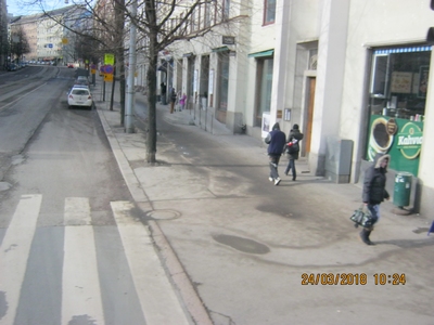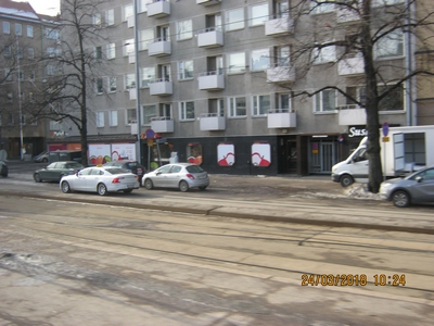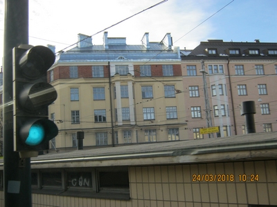2018. Maaliskuu. Kuusi kuvaa Helsingissä lauantaina 24.03. Mannerheimintie Kansaneläkelaitokselta hotellin kulmalle.
