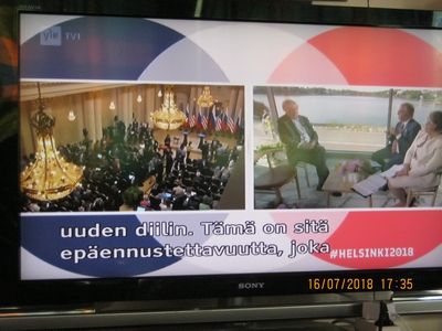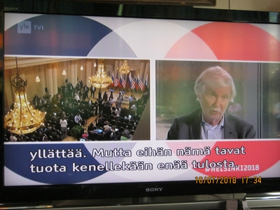 Helsinki 2018. Trump vs. Putin Ylessä 16.07.2018. Tuomioja mm. kauppasodasta, pakotteista ja Venäjästä klo 17:34. EDELLINEN - SEURAAVAKuvat Pertti Manninen Ylen lähetyksistä. |