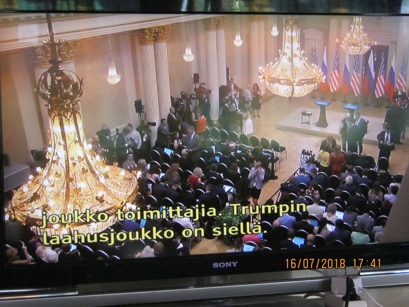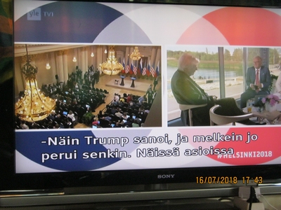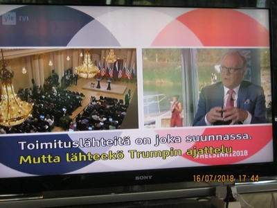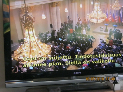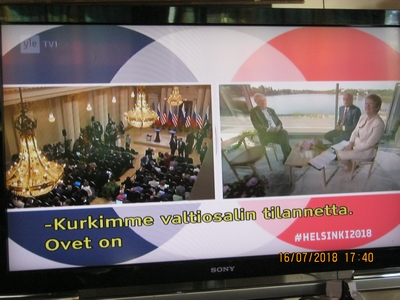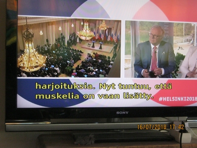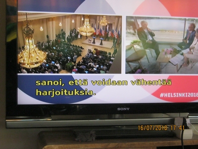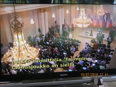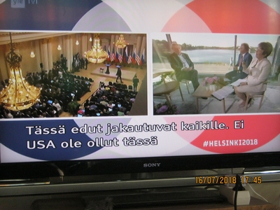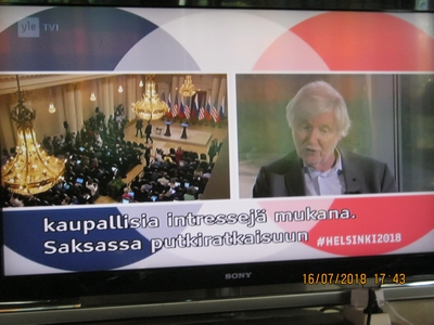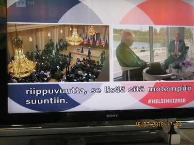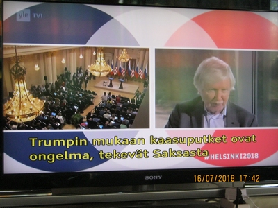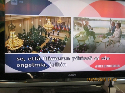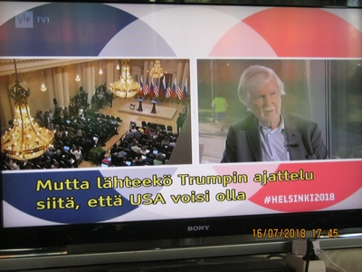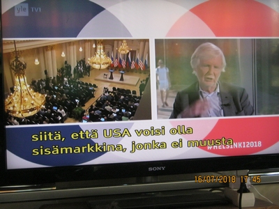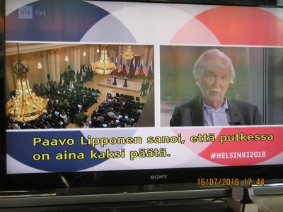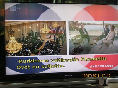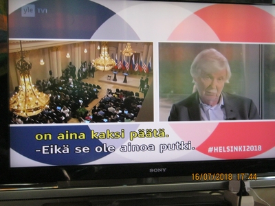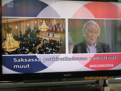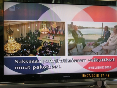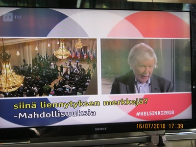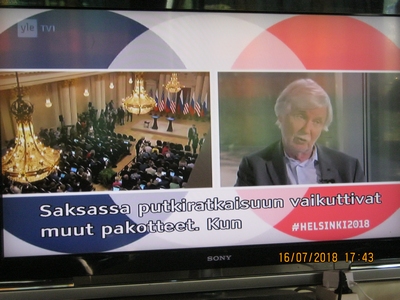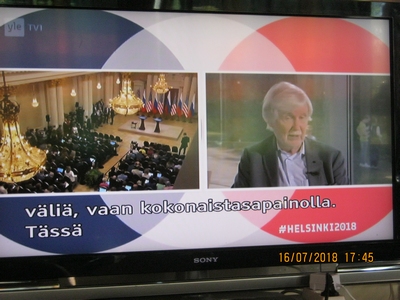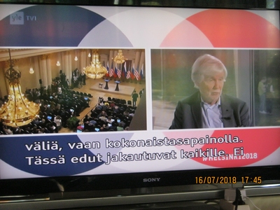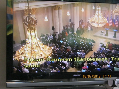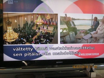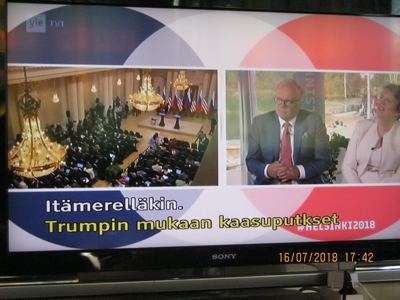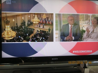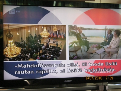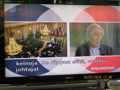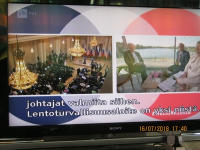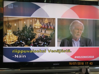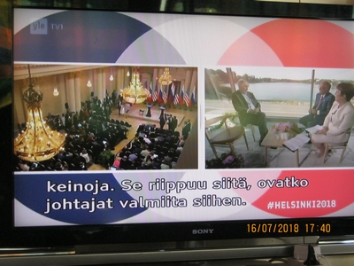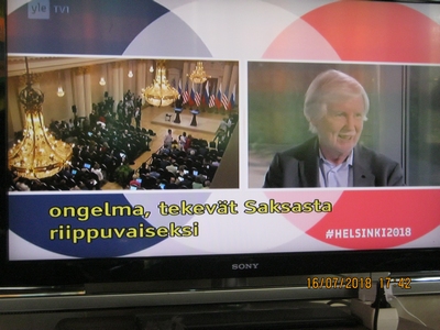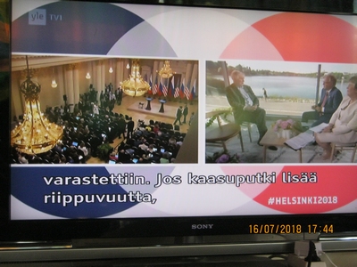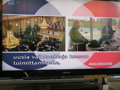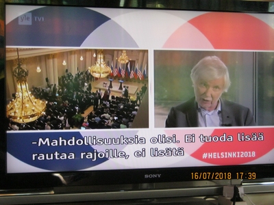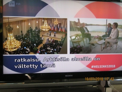 Helsinki 2018. Trump vs. Putin Ylessä 16.07.2018. Tuomioja mm. Itämerestä, kaasuputkesta ja kaupasta. Kurkistus valtiosaliin klo 17:39. EDELLINEN - SEURAAVAKuvat Pertti Manninen Ylen lähetyksistä. |