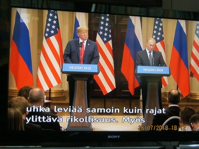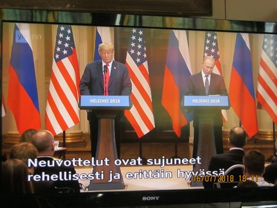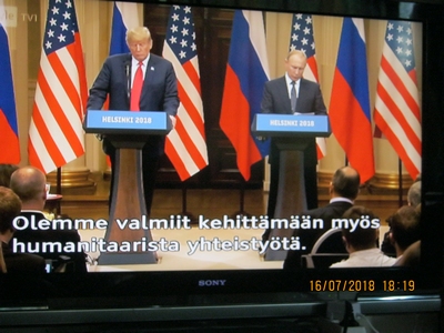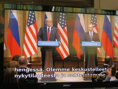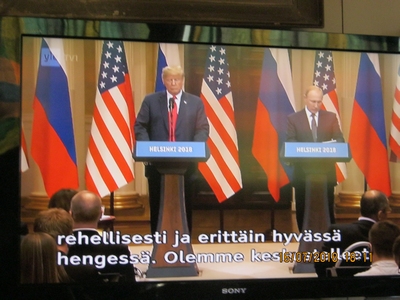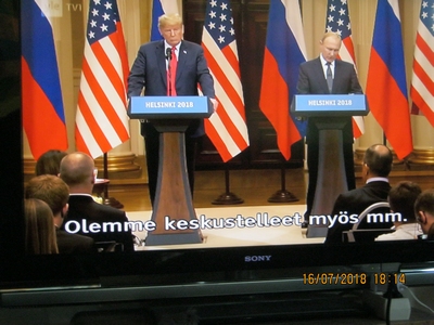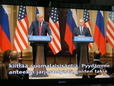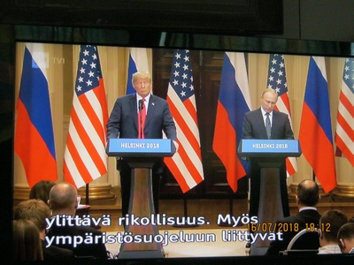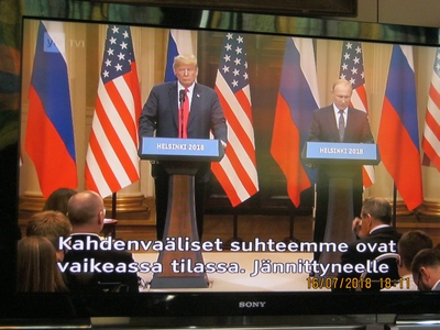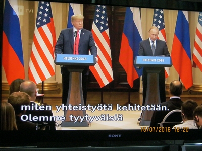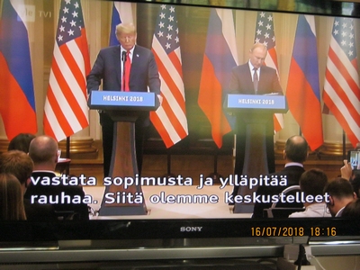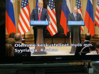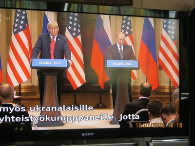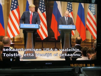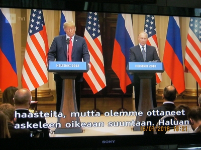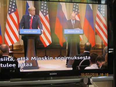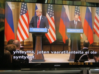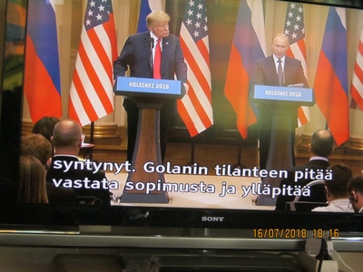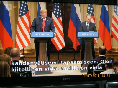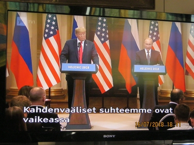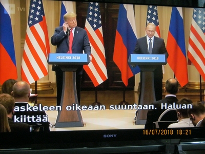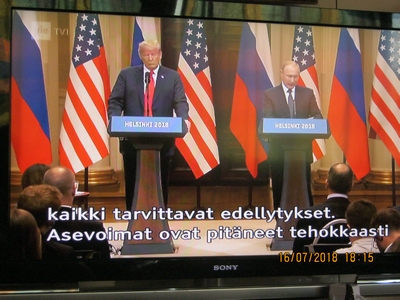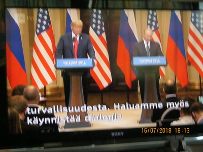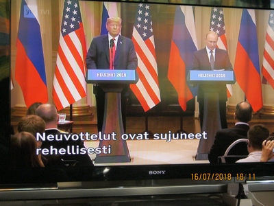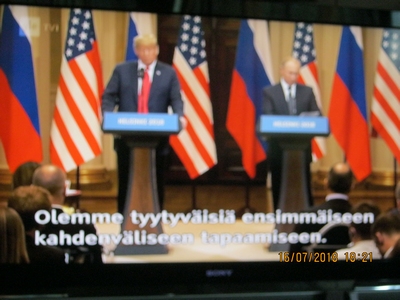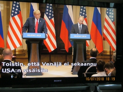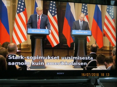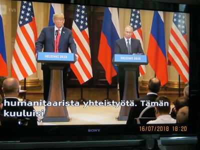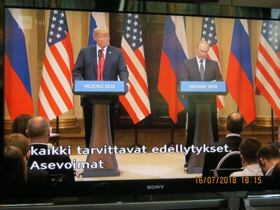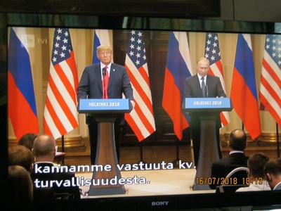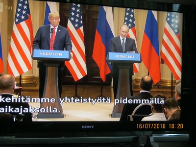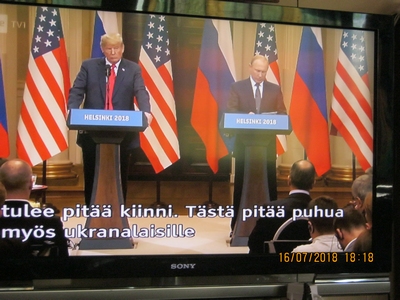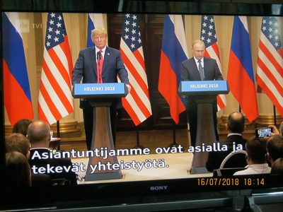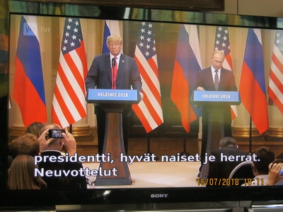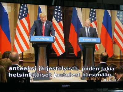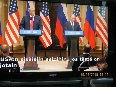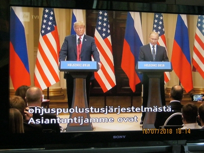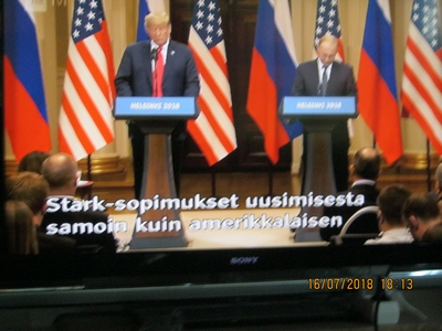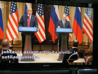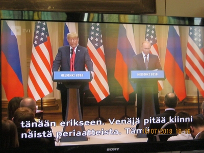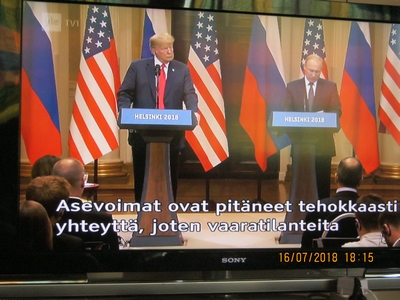 Helsinki 2018. Trump vs. Putin Ylessä 16.07.2018. Presidentti Putin mm. ydinaseista, Stark-sopimuksen uusimisesta, Syyriasta, Iranista, Ukrainasta, kaupasta ja väitetystä sekaantumisesta USA:n vaaleihin sekä humanitaarisesta yhteistyöstä klo 18:10. EDELLINEN - SEURAAVAKuvat Pertti Manninen Ylen live-lähetyksestä. |