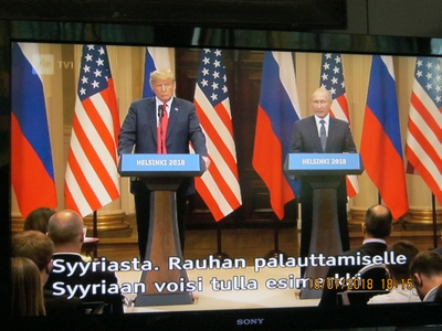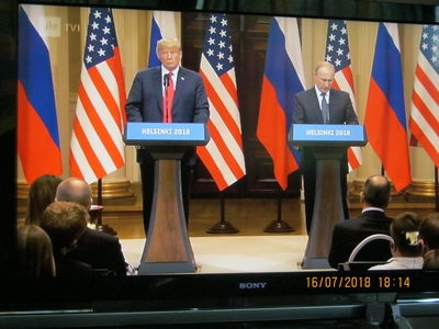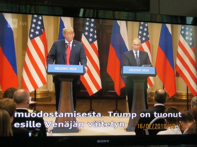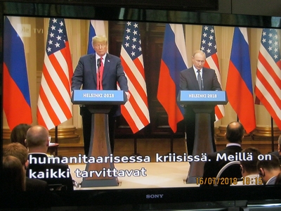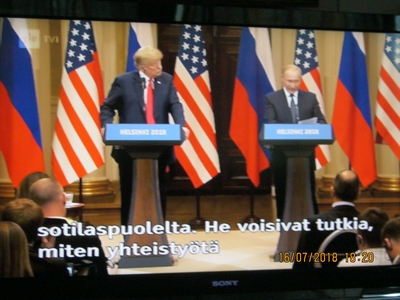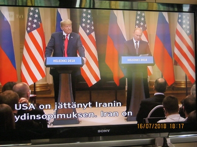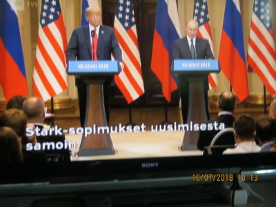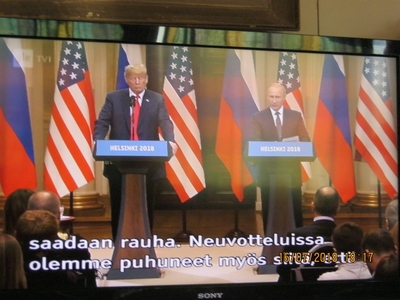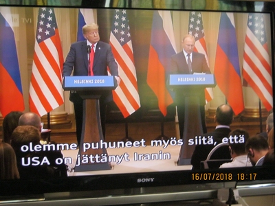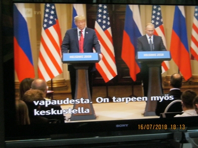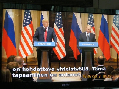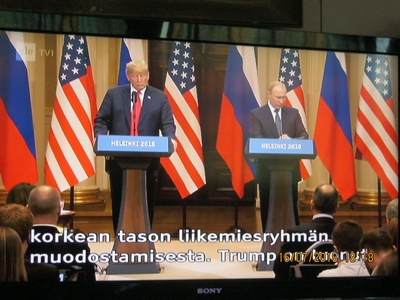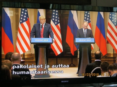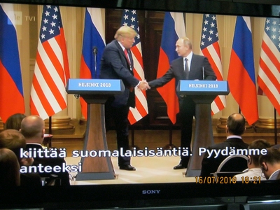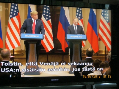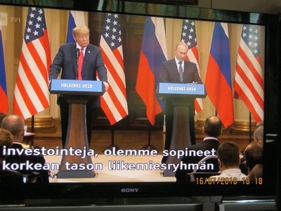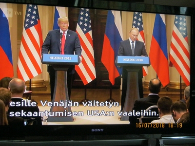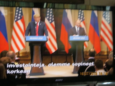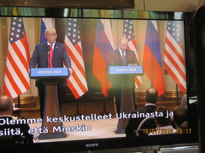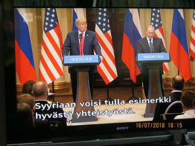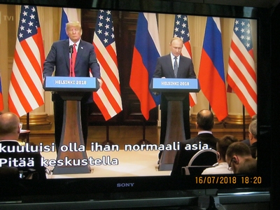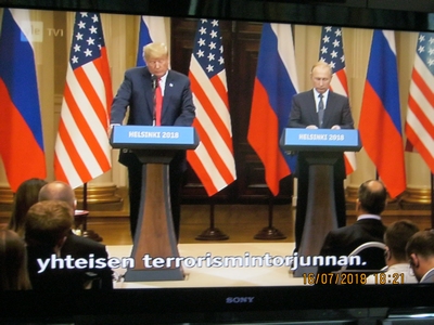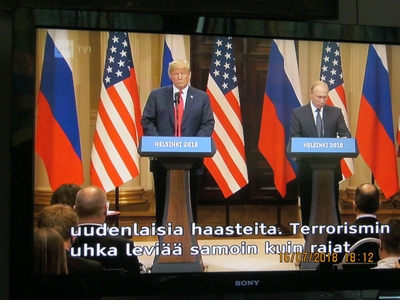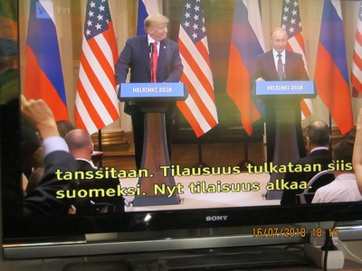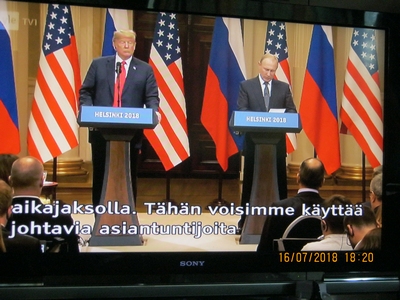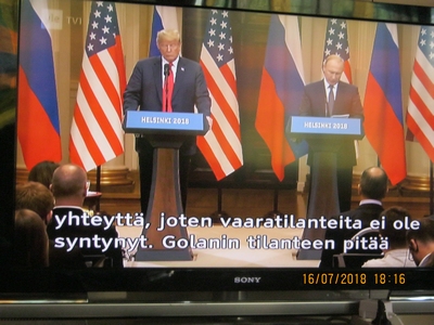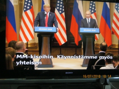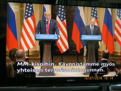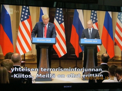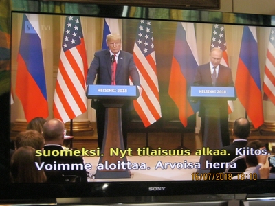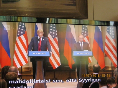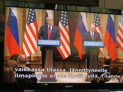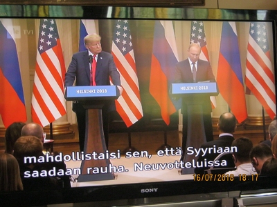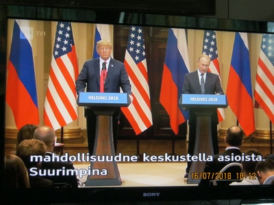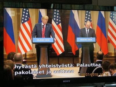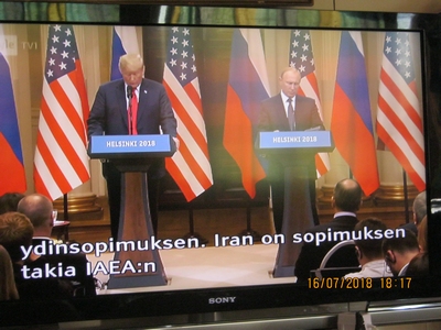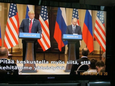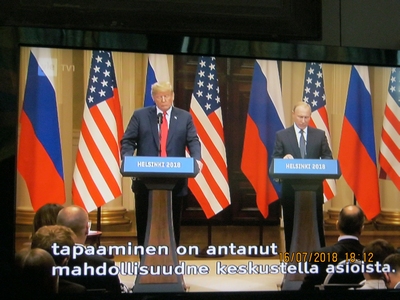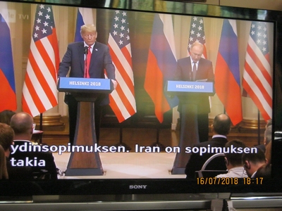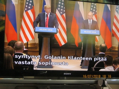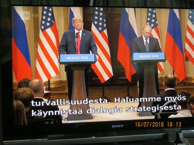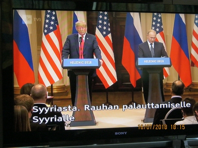 Helsinki 2018. Trump vs. Putin Ylessä 16.07.2018. Presidentti Putin mm. ydinaseista, Stark-sopimuksen uusimisesta, Syyriasta, Iranista, Ukrainasta, kaupasta ja väitetystä sekaantumisesta USA:n vaaleihin sekä humanitaarisesta yhteistyöstä klo 18:10. EDELLINEN - SEURAAVAKuvat Pertti Manninen Ylen live-lähetyksestä. |