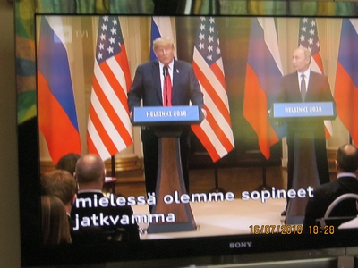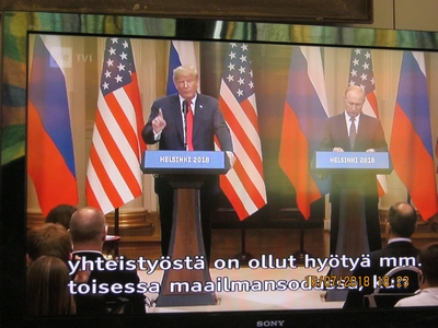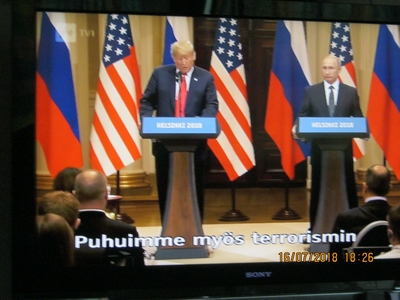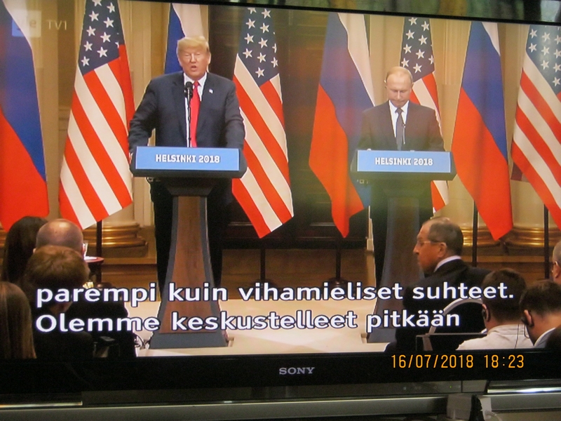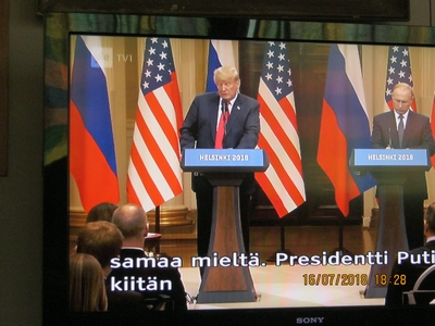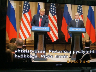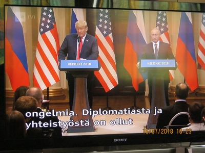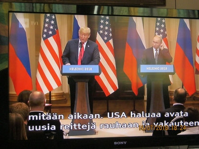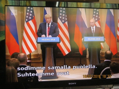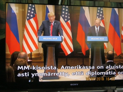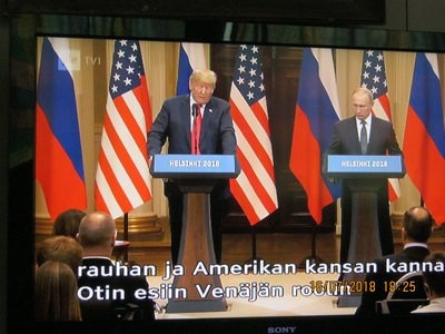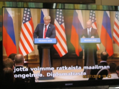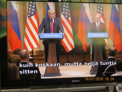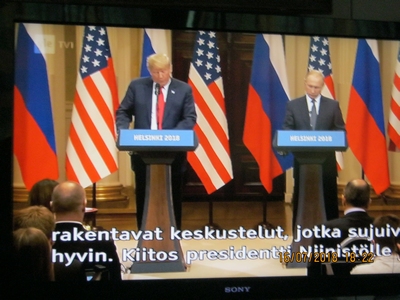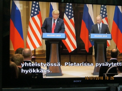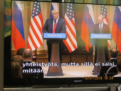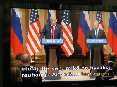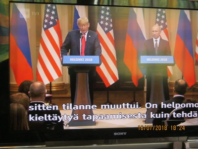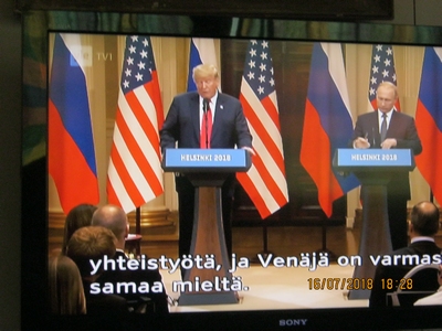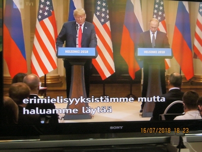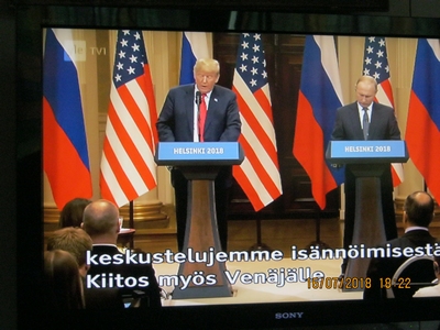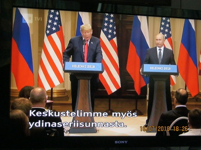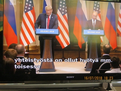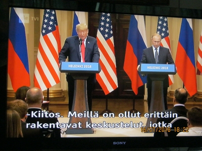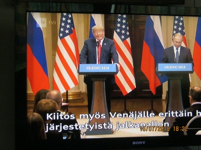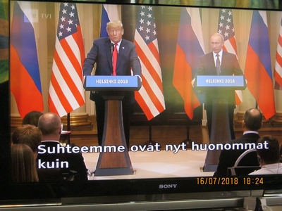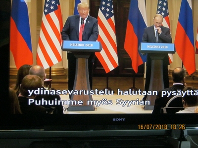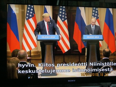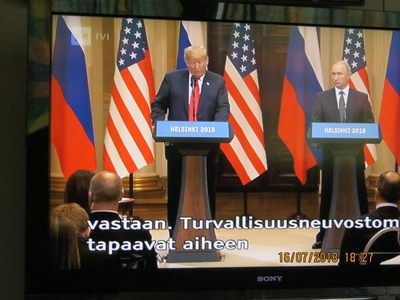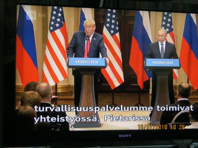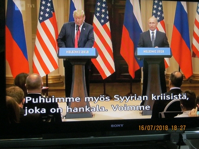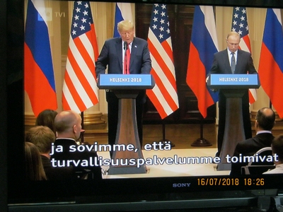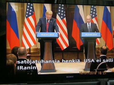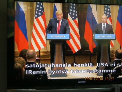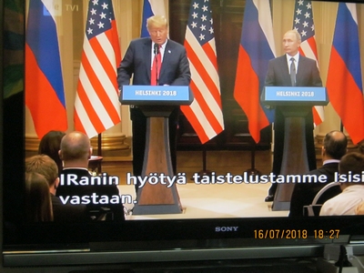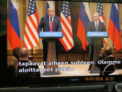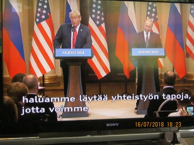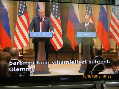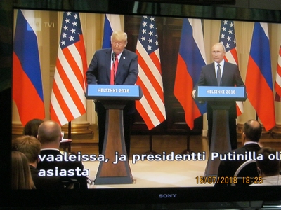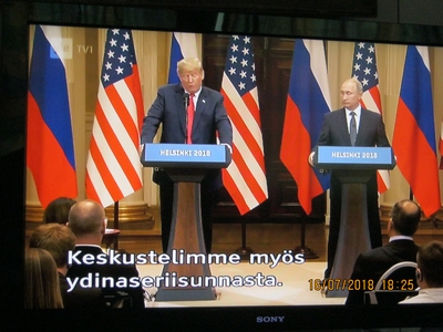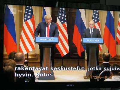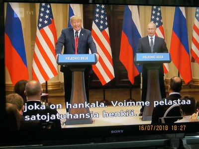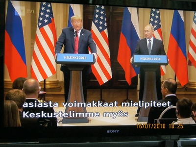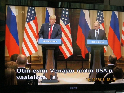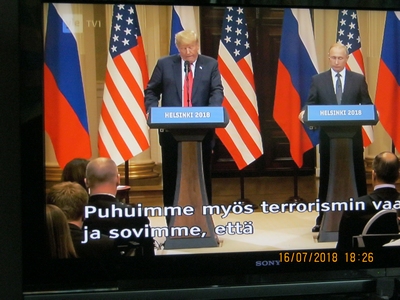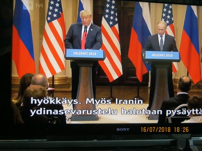 Helsinki 2018. Trump vs. Putin Ylessä 16.07.2018. Presidentti Trump mm. rauhasta ja vakaudesta, Venäjän roolista USA:n vaaleissa, ydinaseriisunnasta, terrorismista, Iranista, Syyriasta sekä tapaamisten jatkamisesta klo 18:22. KUVAT - EDELLINEN - SEURAAVAKuvat Pertti Manninen Ylen live-lähetyksestä. |