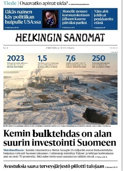 Kemin bulktehdas on alan suurin investointi Suomeen.