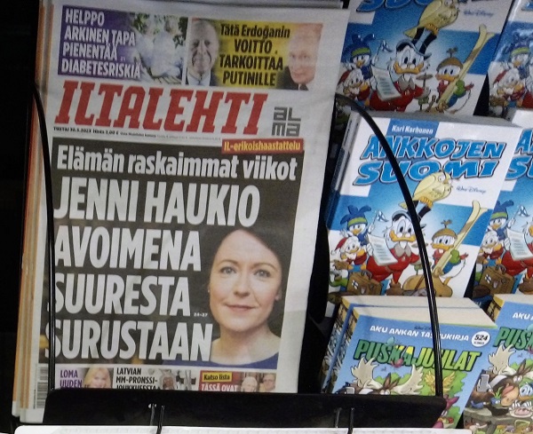 Nettisanomat - Keskiviikkona 31.5.2023. Jenni Haukio. Tiistaina 30.5.2023. Ilta-Sanomat: Jenni Haukio avautuu kipeistäkin hetkistä. Perhearki kulissien takana. Kirja. Iltalehti: IL-erikoishaastattelu. Elämän raskaimmat viikot. Jenni Haukio avoimena suuresta surustaan. - Arkisto 2012. "URA" "Ura". Kansikuvassa Jenni Haukio ja presidentti Sauli Niinistö ja jutussa dosentti Johan Bäckman, jota Ari Korvola haastattelee "Pahassa paikassa" kysyen onko kysymyksessä jopa suomalainen kansanmurha. Seura 18.10.2012. Torstaina 2012-12-27 13:58 Lounasravintola - Kahvila Rosannessa Laukaassa. Kuva: Pertti Manninen. --- Tiistaina 30.5.2023. The Guardian. Linkit: