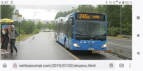 Lauantaina 10.6.2023. Laukaa. Peurunka 2004 Matkalla Helsinki-Jyväskylä 2006 Kirkkonummi. Nuuksio 2016 (1.5) Kirkkonummi. Björkdal 2017 (22.6) Espoo. Kirkkopuisto 2019 (2.7) Jyväskylä. Paikallisliikenteen terminaali 2021 Lauantaina 10.6.2023. |