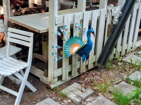 http://www.nettisanomat.com/galleria/uudet/1999/ Aamulla. Peltisen riikinkukon stoori: Kun keväällä kerroin nähneeni riikinkukon pihassani kuulija ei oikein uskonut ja tietenkin piti korjata, että näin fasaanin, joka sekin pörhisteli ja kaakatti. Olin jo unohtanut koko hauskuuden mutta kuulija ei. Ja niinpä sain lahjaksi Livarnon: Metal Bird Ornament, Height approx. 90.5 cm. Paikka on vielä hakusessa kun ja tontilla kulkee peuroja ja hirviäkin.