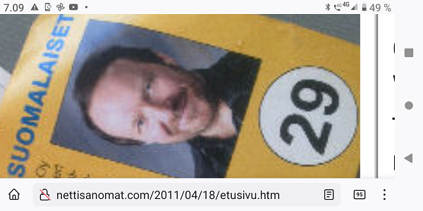 Nettisanomat - Maanantaina 14.8.2023. Jätskiautolla. Uusimaa. Kirkkonummi. Björkdalintie. Pappa pikkuisen kanssa ostamassa ison paketin. Lauantaina 12.8.2023 puolen päivän aikaan 11:33. Kuva. Pertti Manninen. - Arkisto 2011. Rasismia Vapunaattona 30.4.2011 Teuvo Hakkaraisen vaaliesite. Lue! Neekeriukko ja hurriakka. Pääkirjoitus. (Teuvo Hakkarainen, Eva Biaudet ja Matti Vanhanen) Lue! Stubb merirosvojen vapauttamisesta: "Ei se sen kummempaa ... Lue! Persusta pesuun (Jussi Niinistö) Lue! Onneksi on perussuomalaiset Lue! Pääkirjoitus lauantaina 2011-04-30 Neekeriukko ja hurriakka. Lue! Torstai 2011-04-21 Stubb epäiltyjen merirosvojen vapauttamisesta: "Ei se sen kummempaa ole" Lue! Ensimmäinen ja viimeinen kerta: PERSU – Asia: ala-arvoista turvallisuus- ja kielipolitiikkaa. Huhtikuu 20, 2011 Lue! Rasismia Vapunaattona 30.4.2011 --- Sunnuntaina 13.8.2023. Uusi sukupolvi hippasilla. Uusimaa. Kirkkonummi. Björkdal. Oravien uusi sukupolvi hippasilla kaksihaaraisessa tammessa. Sunnuntaina 13.8.2023 aamulla 08:40. Kuva. Pertti Manninen. --- Torstaina 10.8.2023. Koulut alkoivat. Matkakuvia. Linkistä Espoon Lommilassa 09:44. Mopoparkki. Kuninkaantien lukio. Espoo 11:21. Pyöräparkki. Kuninkaantien lukio. Espoo 11:23. Aulassa 11:24. Kaunottaret parkissa 13:25. Lukion uimahallista ulos tullessa. Kuva Pertti Manninen. Kirkkonummen matkakeskuksessa busseja odottaen eri puolille kyliin 13:57. Äiti saattaa pientä koululaista Kirkkonummen asemalla 13:58. 14:19 Uusimaa. Kirkkonummi. keskusta. Kirjasto Fyyri. Ei ikkunoita etelään ja torille. Vanha seinä on peitetty tällä kupariunelmalla. Kahvilassa on tosi pimeää. uudessa korkeassa osassa on sentään ikkunarivi itään ja valaisimiakin tarpeeksi. Valoisa tunnelma kyllä täällä kirjojen puolella on. Torstaina 10.8.2023 15:22. Kuvat. Pertti Manninen. Koulut alkoivat. Matkakuvia. - 20 vuotta sitten 7.8.2003 - Käden ojennus. Kuva - Saddamin poikien hautajaiset. Lue! - Saddamin jahti. Lue! - Halonen sai Loviisan rauhanpalkinnon. Lue! --- Talous. Kone sai Partekin puoli-ilmaiseksi. --- Rallikuvia 2011. --- Maanantaina 31.7.2023. Mansikkakakku. Mansikkakakku. 11 -. - Koistinen. "En minä tähän kuole." Viimeinen repliikki Aki Kaurismäen elokuvassa Laitakaupungin valot. --- Torstaina 27.7.2023. LIIAN PAKSUA! Pääkirjoitus. Pertti Manninen torstaina 27.7.2003 19:01. --- Torstaina 27.7.2023. Liian paksua. Pääkirjoitus. --- Maanantaina 24.7.2023. Sateenkaari. Kuva. - 20 vuotta sitten 24.7.2003. Pääkirjoitus torstaina 24.07.2003. --- Lauantaina 22.7.2023. Synkkä päivä? Sadekuuro yllättää? Kuva - Länsiväylällä Paikalliset. Kysely. - Länsiväylä keskiviikkona 19.7.2023. Länsiväylän toimitus sanoutuu irti kaikenlaisesta rasismista. - Nettisanomat. Pääkirjoitus Arkipäivän rasismia. Tasavallan presidentti Sauli Niinistö on nimittänyt tämän Petteri Orpon hallituksen, josta jo yksiministeri, Vilhelm Junnila, on joutunut eroamaan natsismisyytösten takia ja toista Riikka Purraa vaaditaan eroamaan rasismisyytösten johdosta. ... Arkipäivän rasismia voi harjoittaa sanoissa ja teoissa, molemmissa karkeasti tai sitten hienostuneesti. --- Maanantaina 17.7.2023. Kesäistä Suomesta. Alastomuutta. Alastonkuvausta Kuopiossa. - Kevennystä. Kesäteatteria Lappeenrannassa. Kyyttöjä. - Maanantaina 17.7.2023. 20 vuotta sitten 17.7.2003. Irak-vuoto. Asiakirjat. 11.3.2003. Ilta-Sanomat. 11.3.2003. Iltalehti. 12.3.2003. Ilta-Sanomat. 12.3.2003. Iltalehti. 8.5.2003. Ilta-Sanomat. Uusia! Poliisi tutkii näitä sivuja. . Ilta-Sanomat 11.3.2003. Salainen raportti Lipposen vierailusta Washingtonissa. Bush kiitti Suomea "liittymisestä koalitioon." --- Torstaina 13.7.2023. Biden. Fyyri. Kurpitsa. - - Maanantaina 10.7.2023. 20 vuotta sitten 10.7.2003. Keskustan kannatus noussut viikossa peräti 1,5 prosenttiyksikköä! --- Maanantaina 10.7.2023. Kesällä maustetaan Frans maustaa --- Sunnuntaina 9.7.2023. Arkisto. tiistaina 17.6.2003. Keskisuomalainen. Jyväskylä, Anne Laitinen. Johan Galtung näkee poispääsyn loputtomasta terrorismin kierteestä. --- Nettisanomat 20 vuotta sitten 3.7.2003. Lauantaina 8.7.2023. Satoa odottaen. - 20 vuotta sitten 3.7 (loppu). --- Torstaina 6.7.2023. Eino Leino 145 vuotta. - Tervetuloa ILTA-SANOMAT 6.7.2023 - . Saamelaiskirjailija Niillas Holmbergille Eino Leinon palkinto: --- Maanantaina 3.7.2023. Kesäyön lintu. Kuva. - Nettisanomat 20 vuotta sitten 3.7.2003. Helsingin Sanomat jäi valheesta kiinni! HS-Gallup 15.06.2003. --- Perjantaina 30.6.2023. Harrikat kesässä. --- Torstaina 29.6.2023. Tervetuloa Välkommen ILTA-SANOMAT --- Tiistaina 27.6.2023. Venäläiset tulevat? - Värisuora. Petteri Orpo, pääministeri, Kok. Antti Häkkänen, puolustusministeri, Kok. Elina Valtonen, ulkoministeri, Kok. Kuva. - Sauli Niinistö, tasavallan presidentti. - - Nyt 2023. Uusi ulkoministeri Elina Valtonen. Uusi presidentti? --- Tiistaina 20.6.2023. Petteri Orpo ja Henrietta Ylen TV1:ssä ja TV2:ssa 17:01. --- Sunnuntaina 18.6.2023. Kymmenen kuvaa. 10 kuvaa: Moto Guzzi kyläkaupalla Kuvat Riikinkukko Kuvat Mummin ruusut Kuvat Hallitusohjelma märkä päiväuni. Li Andersson Kuvat - --- Tiistaina 13.6.2023. Zlatan lopettaa. - --- Lauantaina 10.6.2023. - 20 vuotta sitten: "Pinnan alla" - Ukraine 10 June 2023 - Arkisto tiistaina 22.3.2005. "Paul Wolfowitz". Kuva. --- Perjantaina 9.6.2023. Viikon kuva. Kirkonkylän kahvilalla. --- Torstaina 8.6.2023. "Sireenien aikaan." --- Torstaina 1.6.2023. Opeta lapsi uimaan vuodelta 2001. - Kuva. Viikon kuva. "Tyttö, sorsien sukua." --- - Arkisto 2011.. Siittimen palautus Rakveressa. --- Nettisanomat 20 vuotta sitten 22.5.2003. --- 21.5.2023. Kevään ensimmäinen. Voikukka. - - Valkovuokot. - UUDET SIVUT! - Linkit: Since 1999 KOOTUT Patsaita 1999-2006 - 2007-2008. --- 15.5.2023. Hanami. Kirsikkapuut kukkivat. --- Äitienpäivä. Äidin rakkaus. Helsinki. Rautatientori. Kuva lauantaina 2006-03-31, - Äitienpäiväsivut 2000-2007 koottuina - Pääkirjoitus. 2001. --- 13.5.2023.