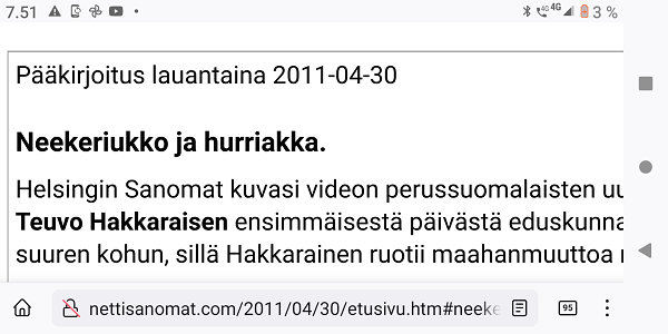 Maanantaina 14.8.2023. Alkuperäinen sivu: http://www.nettisanomat.com/ Rasismia Vapunaattona 30.4.2011 |