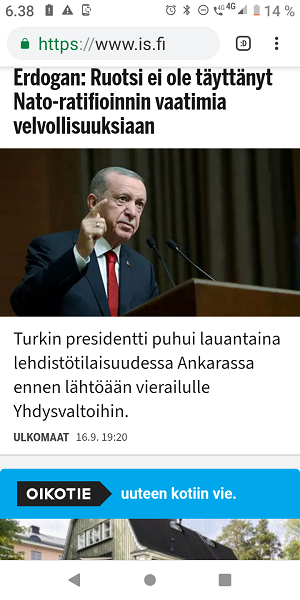 Maanantaina 4.9.2023. Alas hallitus! Kohti sosialistista vallankumousta! Kansanedustaja Pauli Kiuru kieltäisi Tampereella levitetyn julisteen, koska hänen mielestään siinä sirppi ja vasara kiihottavat väkivaltaan. Lue lisää! "... että Suomen ja Ruotsin taustalla naruista vetelee Yhdysvallat." Perjantai 26.8.2022. "Tämä on rautaesirippu." ... Suomen ja Ruotsin taustalla naruista vetelee Yhdysvallat. Kuvasarja |