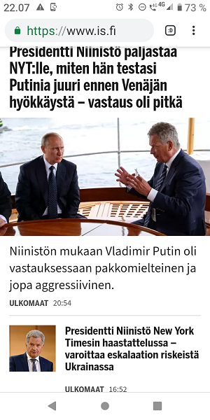 Pääkirjoitus: Ukrainan verinen tie Natoon. Venäjän julma ja verinen hyökkäys naapurimaahansa Ukrainaan jatkuu ja jatkuu. Nyt on menossa jo 168. päivä. Media käyttää tästä sodasta nimitystä "Ukrainan sota". Pikemminkin pitäisi käyttää nimitystä "Venäjän sota". Mitään rauhanneuvotteluja ei vielä käydä. Nato-maat ja Natoon