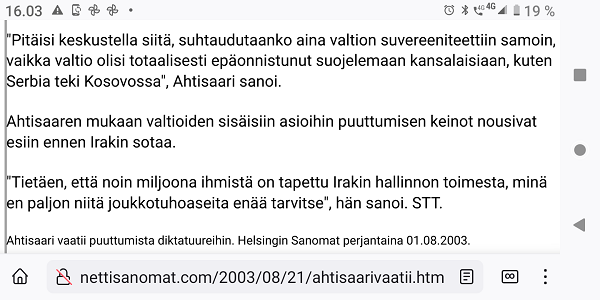 Torstai 19.1.2023. "Massiivisia protesteja Irakin sotaa vastaan." http://www.nettisanomat.com/ (Kuvat isonnettu 19.1.2023) |